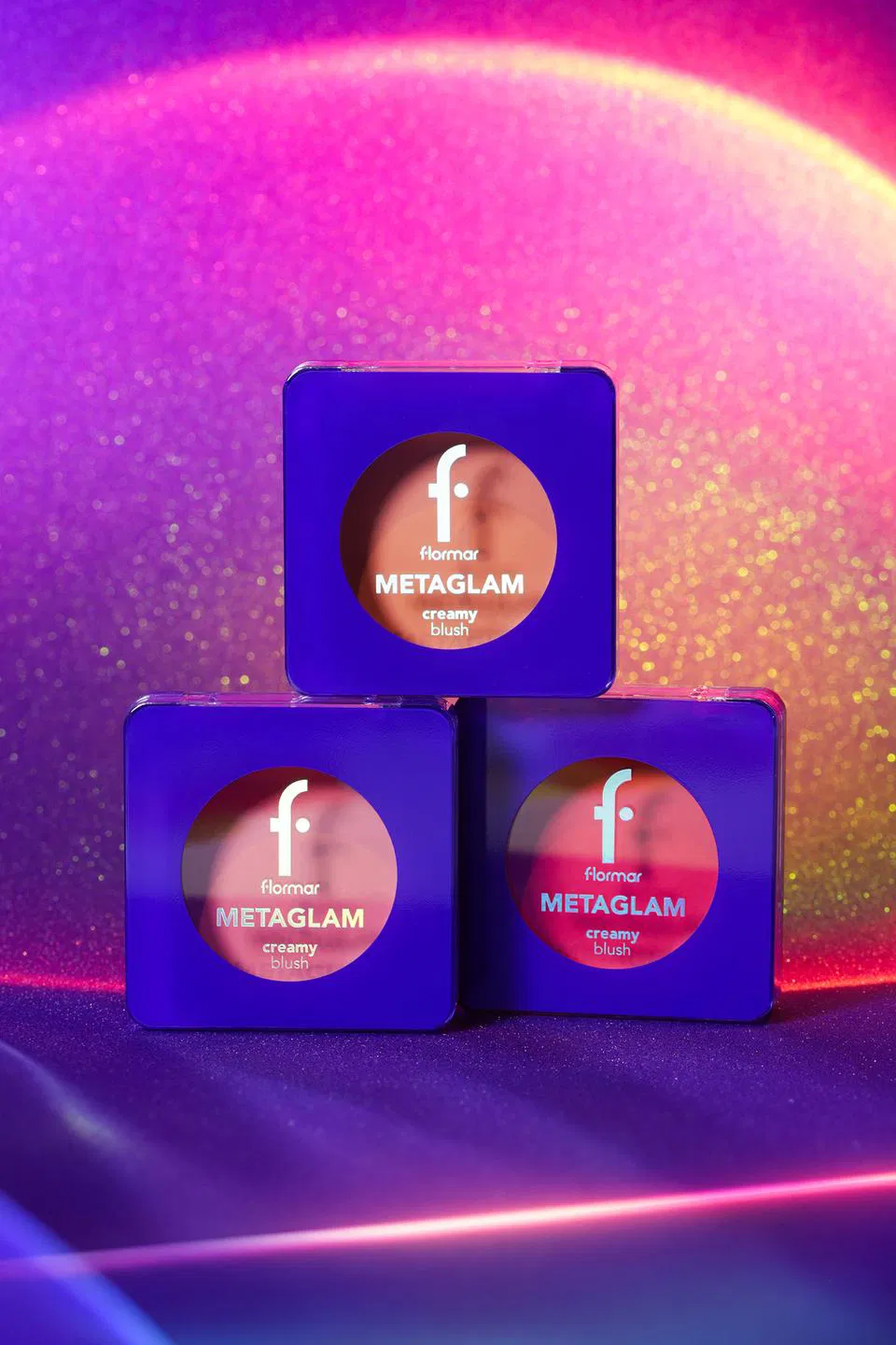 FLORMAR Metaglam creamy blush, es un Colorete Compacto Cremoso de Alta Pigmentación y Acabado Mate